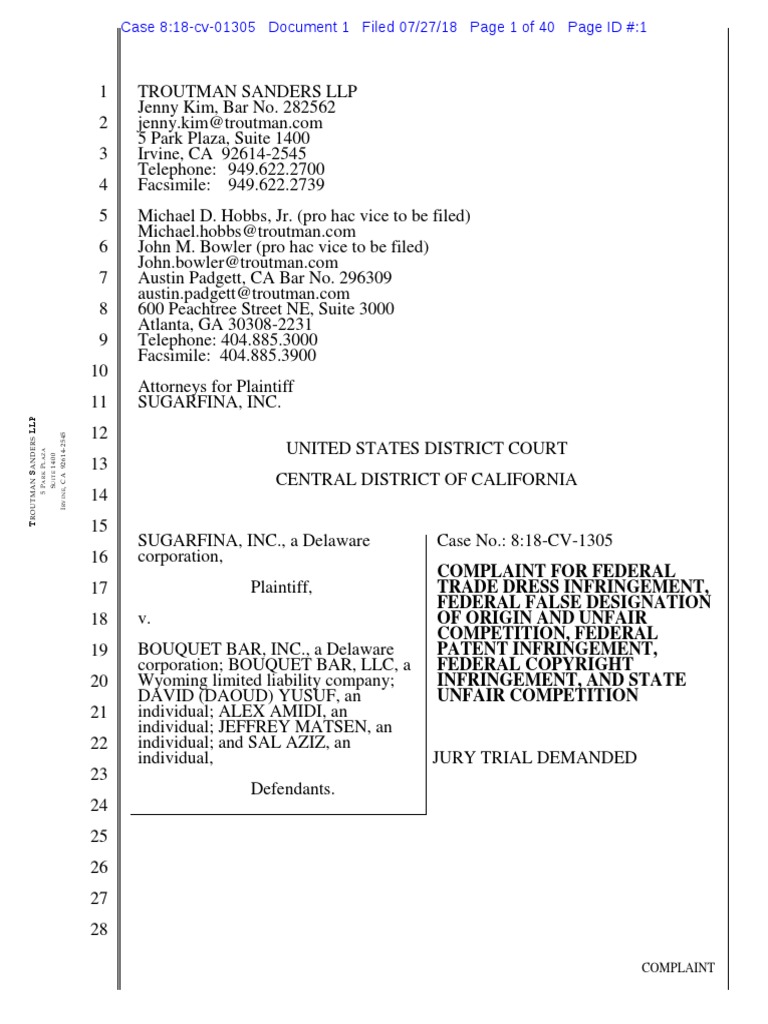 Sugarfina V Bouquet Bar Complaint Trade Dress Complaint