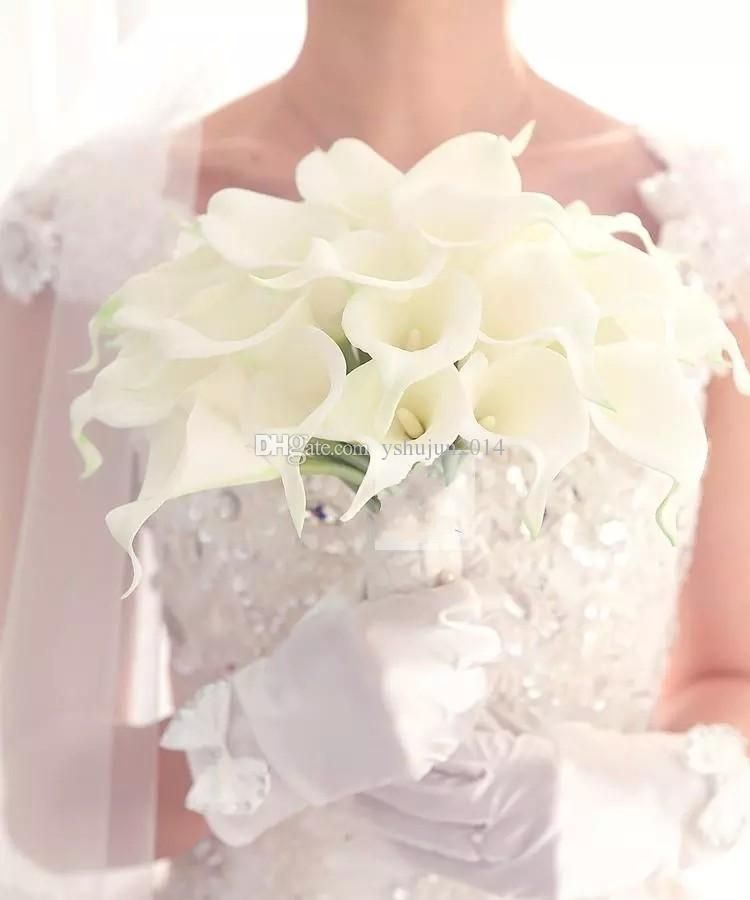 Us 25 71 14 Off Wedding Flowers Bridal Bouquets Pu Bride Holding Flower Ivory White Artificial Calla Lily Flower Wedding Bouquet 30pcs Bouquet In