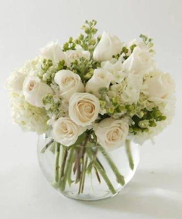 White Roses And White Hydrangea Cube In Glen Head Ny Glen Head Flower Shop