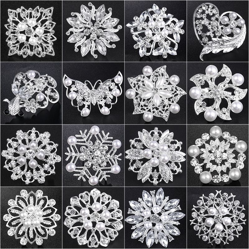 25 Mixed Styles Wedding Brooches Silver Pearl Crystal Rhinestone Flower Bouquet Butterfly Vintage Brooch Pins