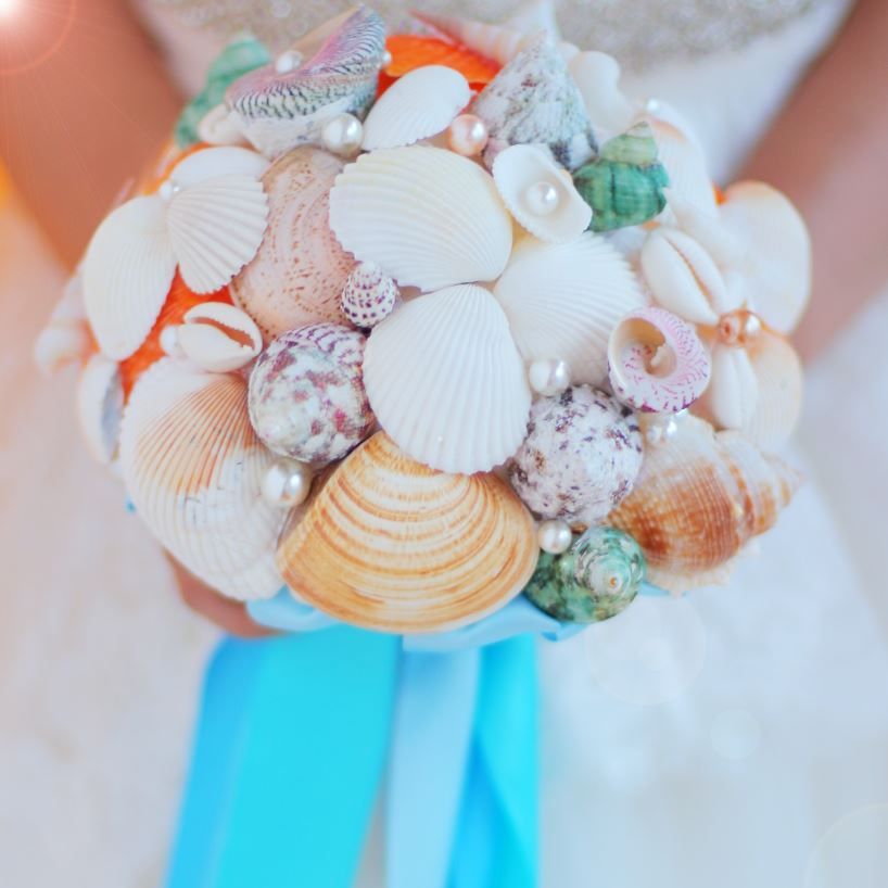 Shell wedding bouquet. Some may consider seashells the flowers of the ocean. Seashell bouquets are not hard to make if you are a skilful crafty person with a glue gun. Every woman wants her wedding day to be unique so that her guests can remember it for years to come.