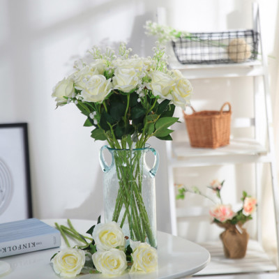 Duhouse 10pcs Silk Roses Artificial Flowers Fake For Arrangement Wedding Party Home Decoration White Long Stem