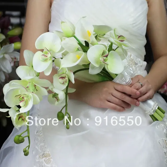 Us 74 99 Bridal Bouquet Weddingl Bouqute Real Touch Phalaenopsis Orchid Calla Lily Tulip Cascade Bouquet Free Shipping In Wedding Bouquets From