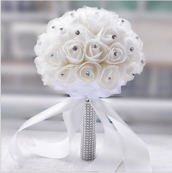 Cheap Beaded Crystal Bridal Bouquets For Garden Beach Wedding Suppliers High Quality Bridesmaid Wedding Bouquet Pe Rose Flowers Handmade Wedding