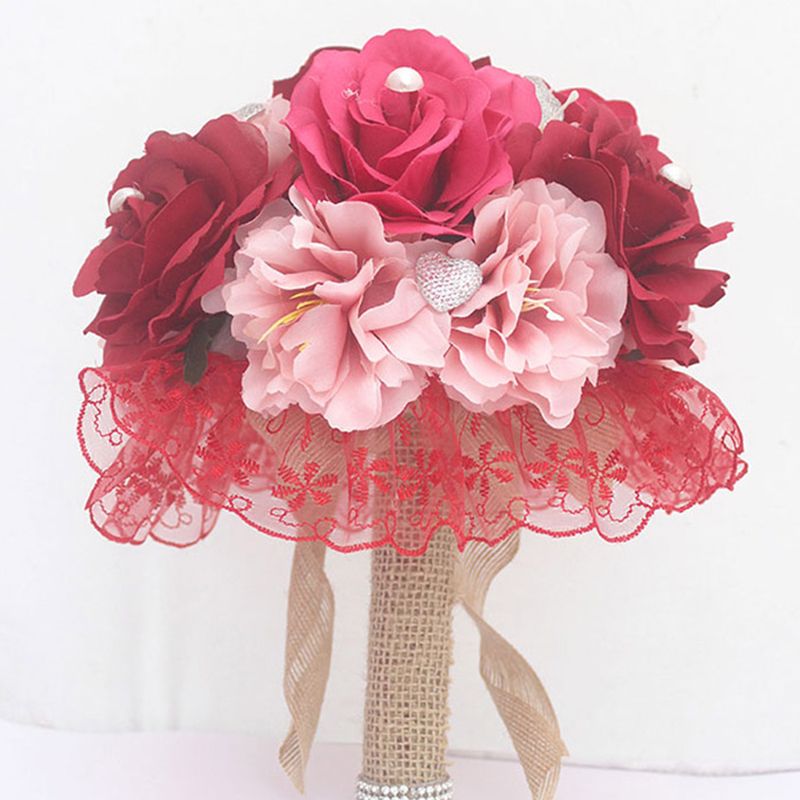 Us 46 9 Wedding Bouquet Popular Pink Wine Red Diamond Bride Holding Bouquets Flowers Adorn Pearls Diamond Silk Ribbon Rose In Wedding Bouquets From