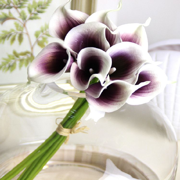 24pcs Purple Heart Mini Calla Lily 14 Calla Lily Bridal Wedding Bouquet Latex Real Touch Flower Bunch Home Decor Free Shipping