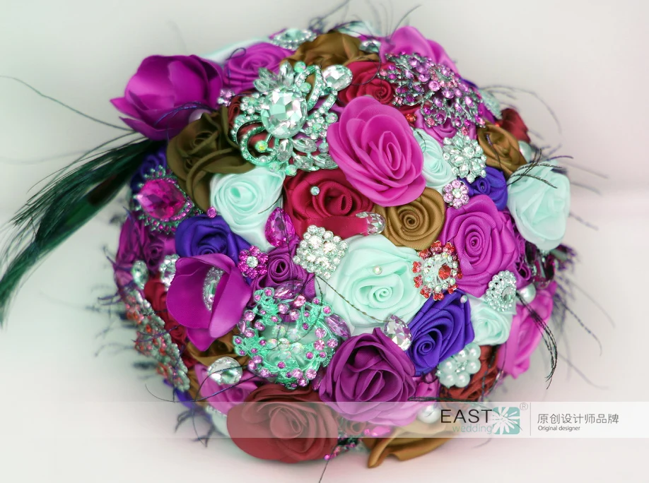 Us 178 0 Bride Creative Peacock Feather Bouquet New Arrival Romantic Wedding Sky Blue Purple Flowers Brooch Bridal Bride S Bouquets In Wedding
