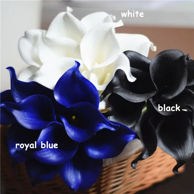 Us 22 19 40 Off White Black Real Touch Picasso Blue Calla Lilies Bouquet 30pcs Lot Blue Heart Calla Lily For Bridal Bouquets In Artificial Dried