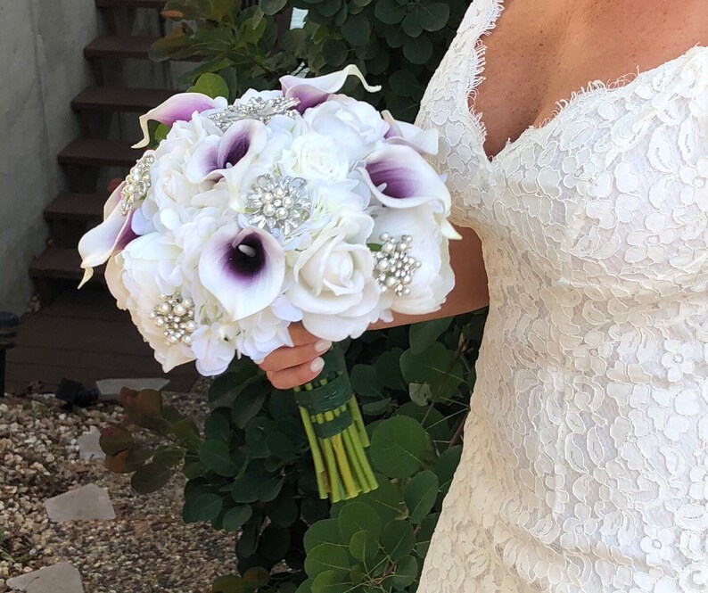 Purple Calla Lily Bouquet Picasso Purple Calla Lily Bouquet Real Touch Calla Lily Bouquet Brooch Bouquet Bling Bouquet White Rose Bouqu
