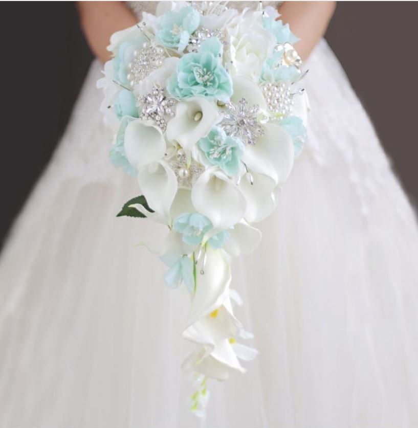 High End Custom Drip Wedding Bouquet Sky Blue Flower White Hydrangea Calla Lily Bridal Bouquet Pictures Of Wedding Flowers Rose Flower Bouquet From
