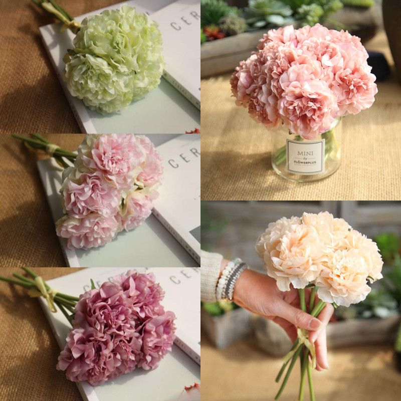 Romantic Artificial Peony Real Touch Bridal Flower Bouquets 1 Bouquet 5 Heads Wedding Home Decor Cheap Fake Flower Make Bouquets Ha8059