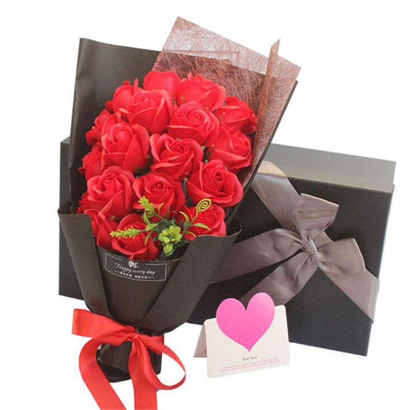 18pcs Creatif Savon Parfume Fleur Rose Bouquet Savon Savon Romantique Valentines Anniversaire Cadeau De Mariage Fleurs Avec Boite Cadeau