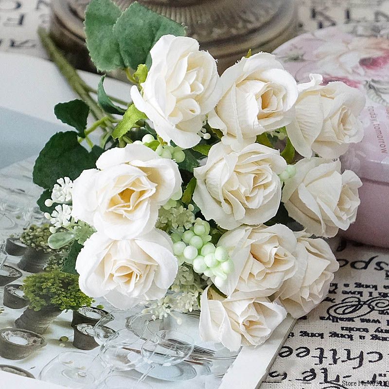10 Heads Latex Real Touch Rose Decor Rose Artificial Flowers Silk Flowers Floral Wedding Bouquet Home Party Design Flowers