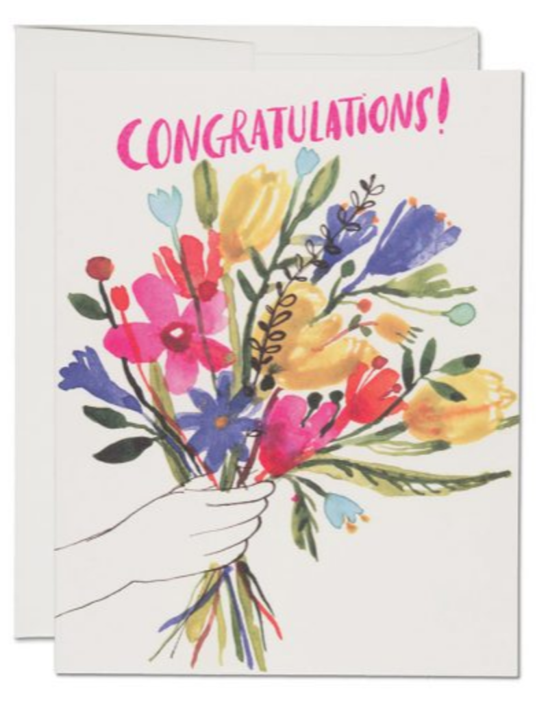 Red Cap Cards Congratulations Hand Bouquet Greeting Card