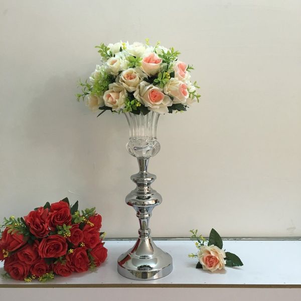 Chinese Best Price Modern Tall Clear Decoration Glass Flower Vase With Silver Bronze Metal Stand Designer Lassock2645 Party Decorating Supplies Party