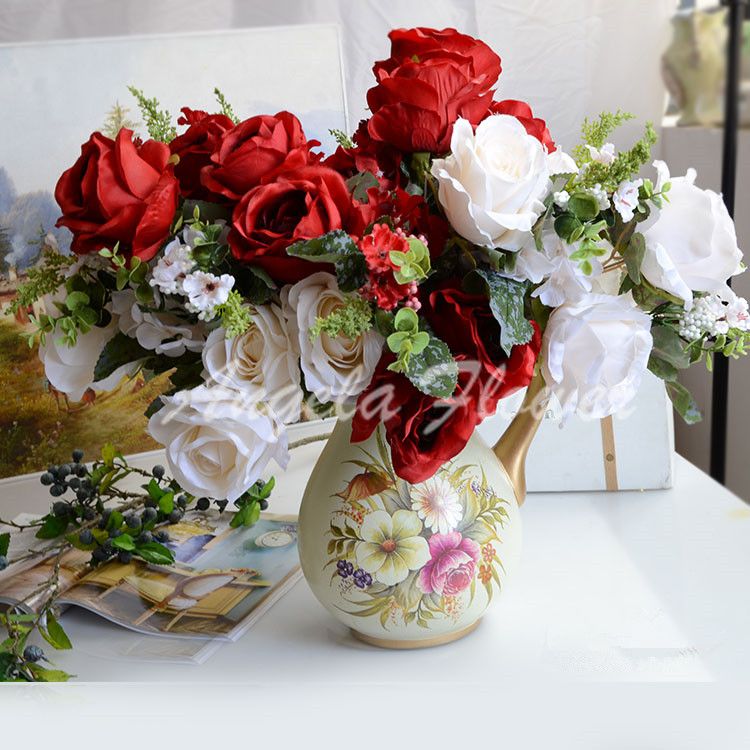 Hot Sale 50pcs Lot 13 Heads Bouquet Artificial Real Look Peony Silk Rose Flowers 7 Color Mix Decorative Birthday Hotel Wedding Home Vase