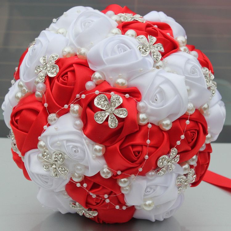 Silk Ribbon Wedding Bridal Bouquets Simulation Flower Wedding Supplies Artificial Flower Pearls Rhinestones Sweet 15 Quinceanera Bouquets 26