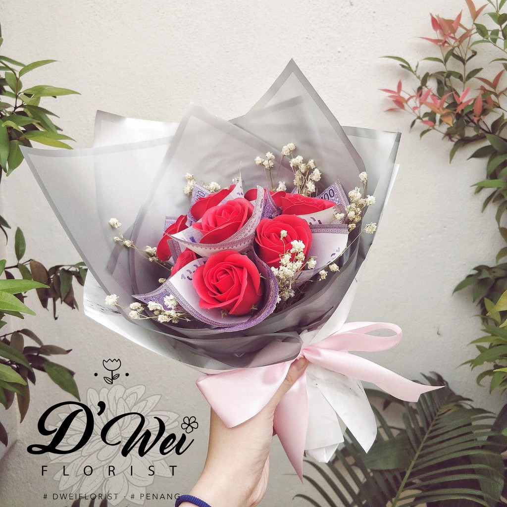 Customized Cash Money Flower Soap Rose Baby Breath Bouquet