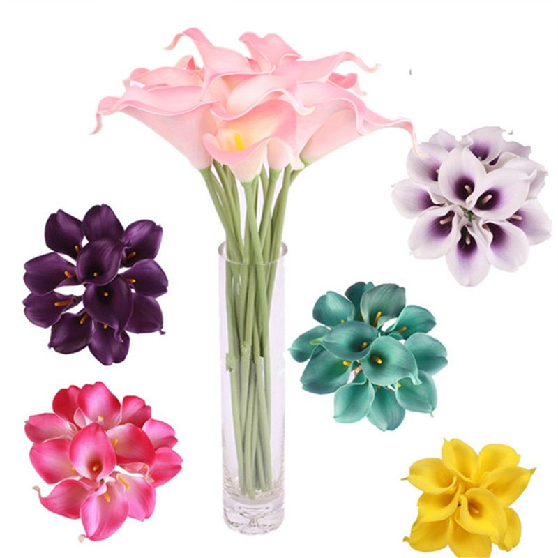21 Colors Real Touch 15 Artificial Calla Lily Flower Bouquet Turquoise Mini Calla Lily Bridal Bouquet Party Wedding Decoration