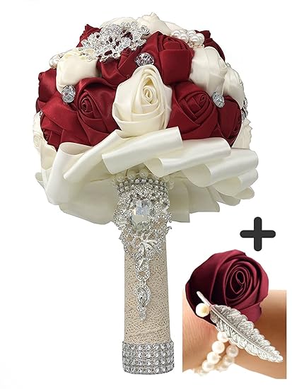 Jackcsale Wedding Bride Bridal Bouquet Brooch Bouquet Bridesmaid Valentine S Day Bouquet Confession With Free Corsage D453 Winered Corsage