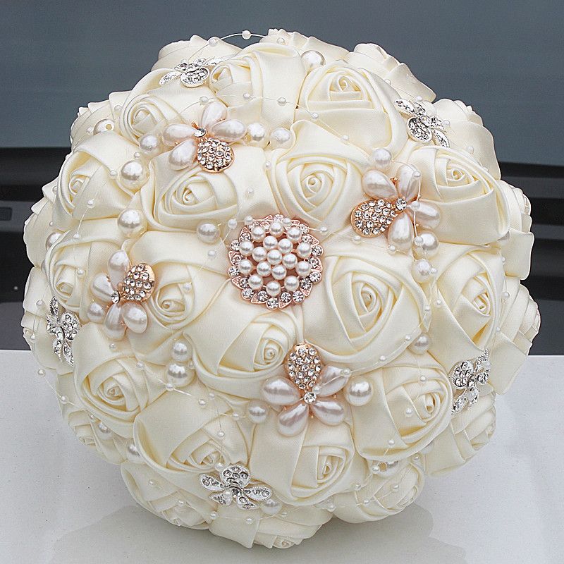 Us 13 95 25 Off Crystal White Ivory Wedding Bouquet Bridesmaid Artificial Wedding Bouquets De Noiva Flower Rose Bridal Bouquet De Mariage In Wedding
